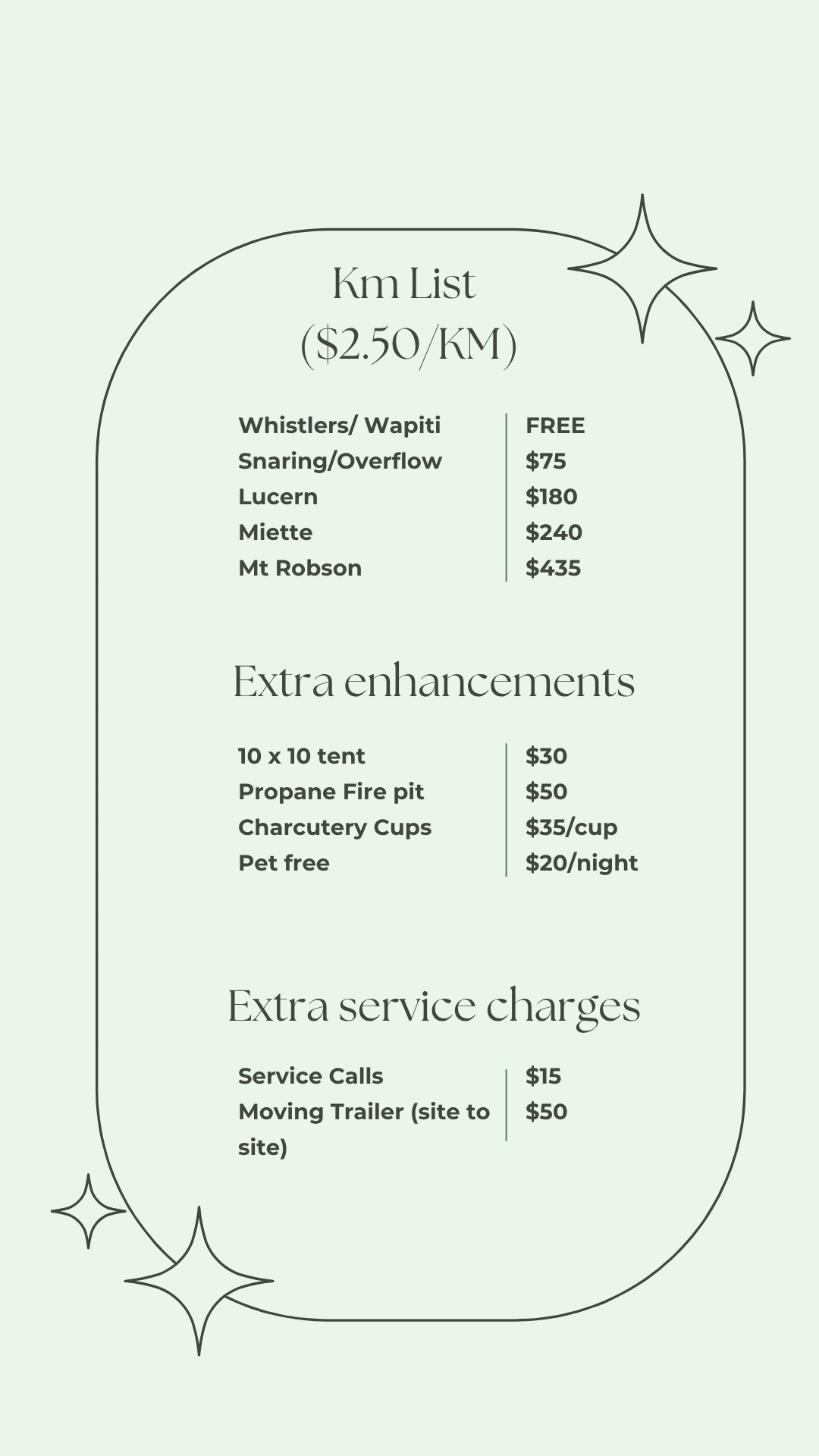 Are you planning to camp further from Jasper? No problem. For a $2.50/KM, we can tow a trailer to your prefered destination.